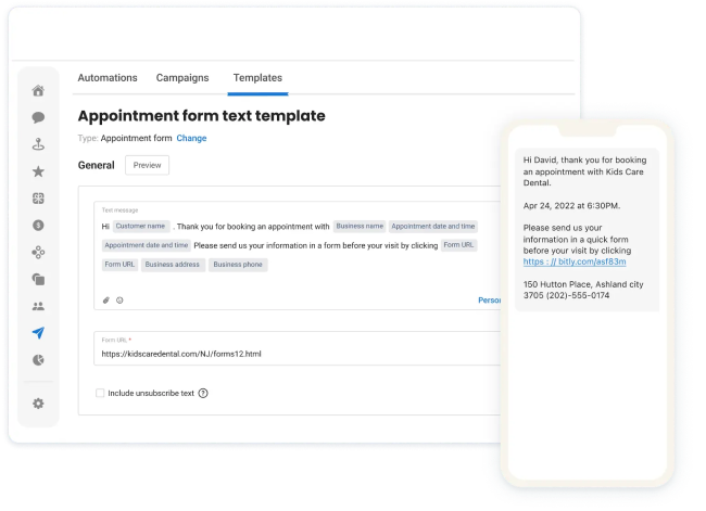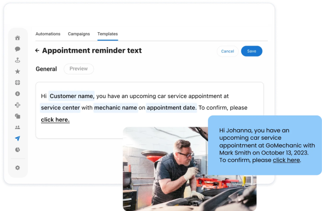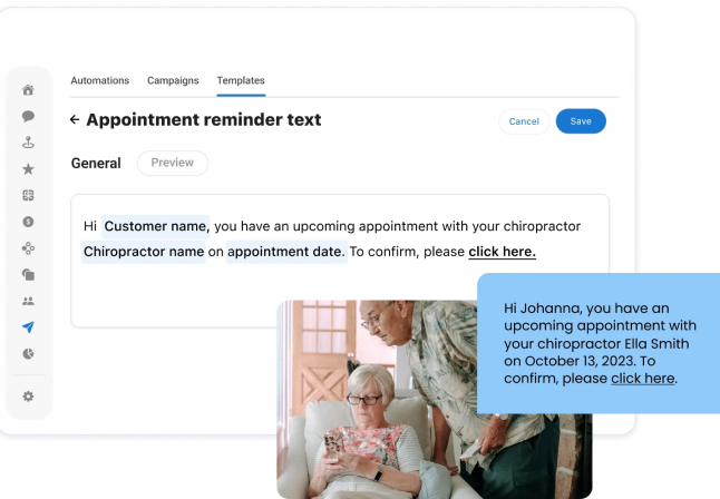 Pair text with an image to focus on your chosen product, collection, or blog post. Add details on availability, style, or even provide a review.Automate appointment reminders through text and email to ensure your customers receive all the essential details for confirming their appointments. Enable them to confirm, cancel, or reschedule with a single click for added convenience.