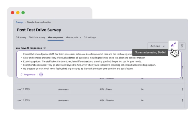 Learn who’s reading and replying to your surveys. View stats by date, distribution channel, and location.