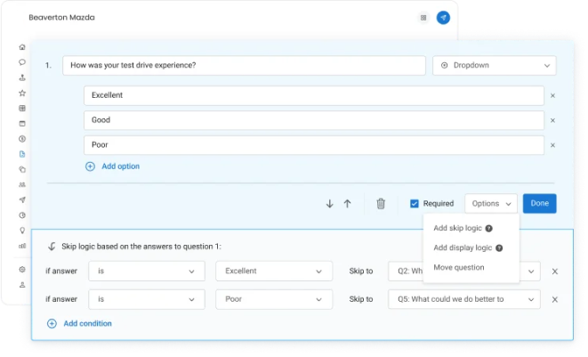Work smarter, not harder. Use custom-built rules triggers, and skip logic to ask customers relevant follow-up questions based on their previous responses.