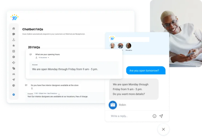 Improve online reputation. Chat with website visitors to convert them into fresh leads.